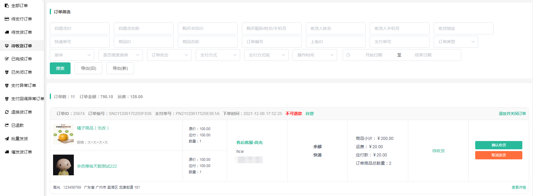 1、后台多商品的订单,点击确认发货--多包裹发货,如下图: