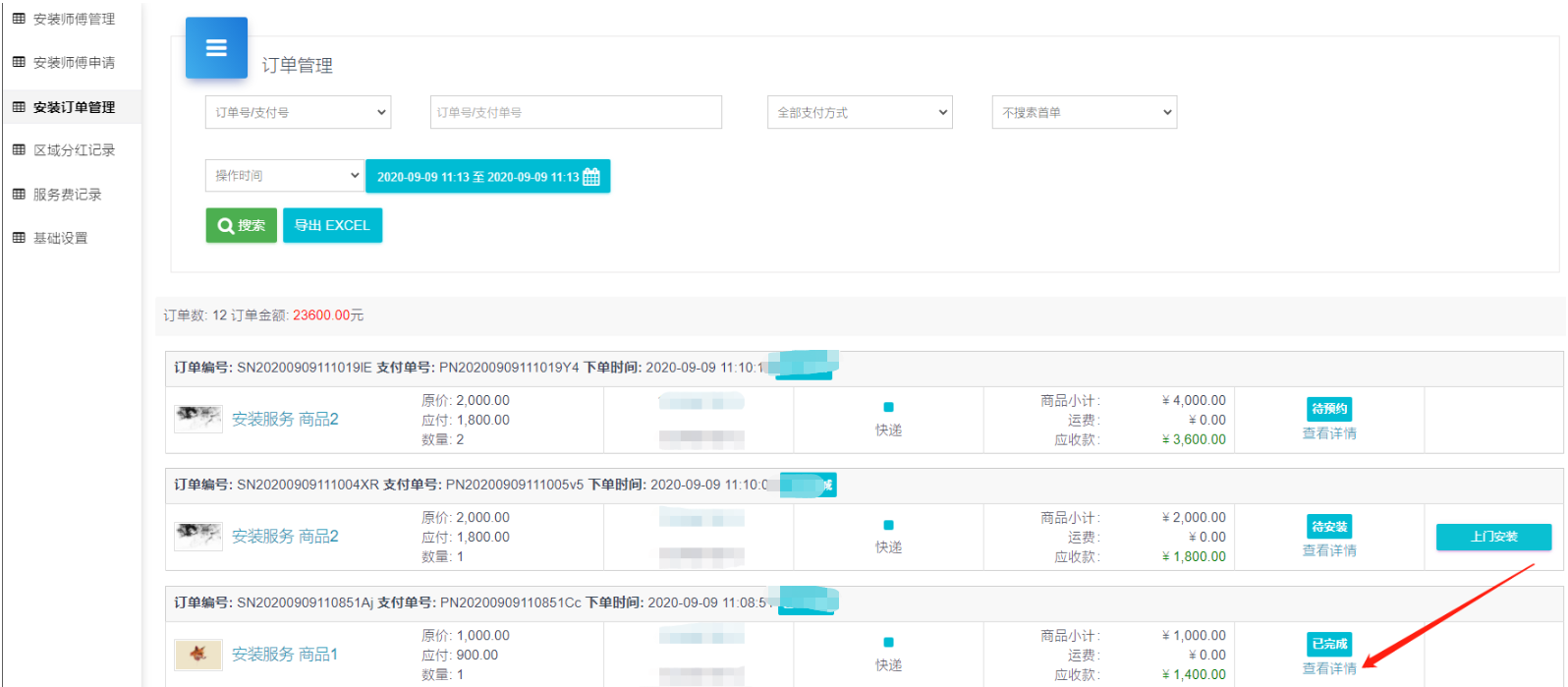 4. 申请被通过审核后台,会员中心入口变为安装服务和安装师傅