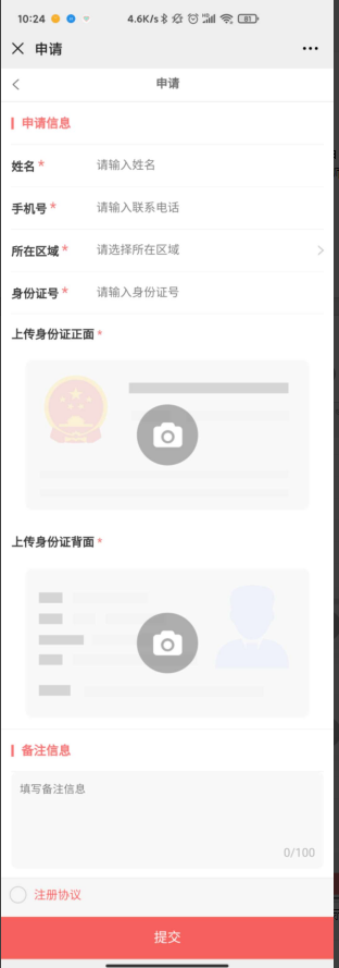 2. 安装师傅申请页面可后台设置顶部背景图,除备注信息外其他选项必填