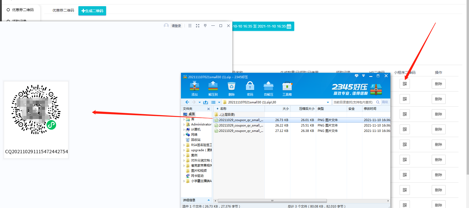 如果生成的是小程序二维码,下载的是小程序二维码的太阳码压缩包。里面包含对应数量的二维码